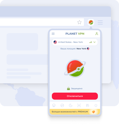 • в браузерной панели нажать на кнопку Planet VPN;